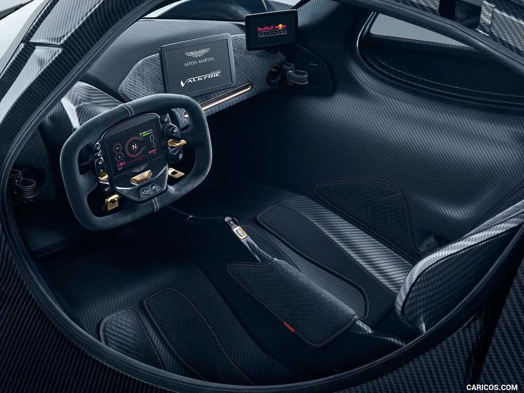 The interior is just as jaw-dropping as the exterior, simplicity and race car feel is what Aston Martin and Red Bull decided to go. There is no gauge cluster instead a selection of screens is found scattered across the dashboard, the screens found on the left and right side are the side mirrors that feed via tiny cameras. The centre screen in the middle of the dashboard acts as the live information feedback and infotainment system for the car. The race-inspired steering wheel has its screen with access to driver gauge clusters, along with dials and switches providing for distraction fewer changes of car parameters without taking eyes off the road. The seats in the Valkyrie are what impresses me the most. As a result of the car having such a small interior, the Carbon-fibre seats are specifically designed for each owner’s body shape using 3D scanning, so for anyone who wants to own one make sure you keep your figure otherwise you’re going to need grease to slide in.